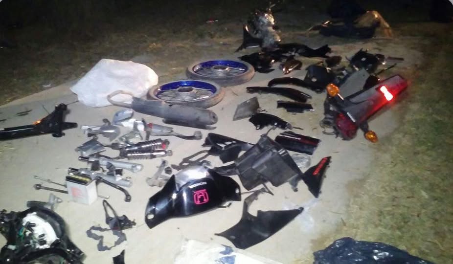 En el mismo procedimiento, también se halló una motocicleta parcialmente armada marca Corven, junto a un importante número de piezas sueltas y accesorios de distintos rodados, incluyendo ruedas, tanque de combustible, asiento, horquillas, ópticas y un bolso con herramientas.